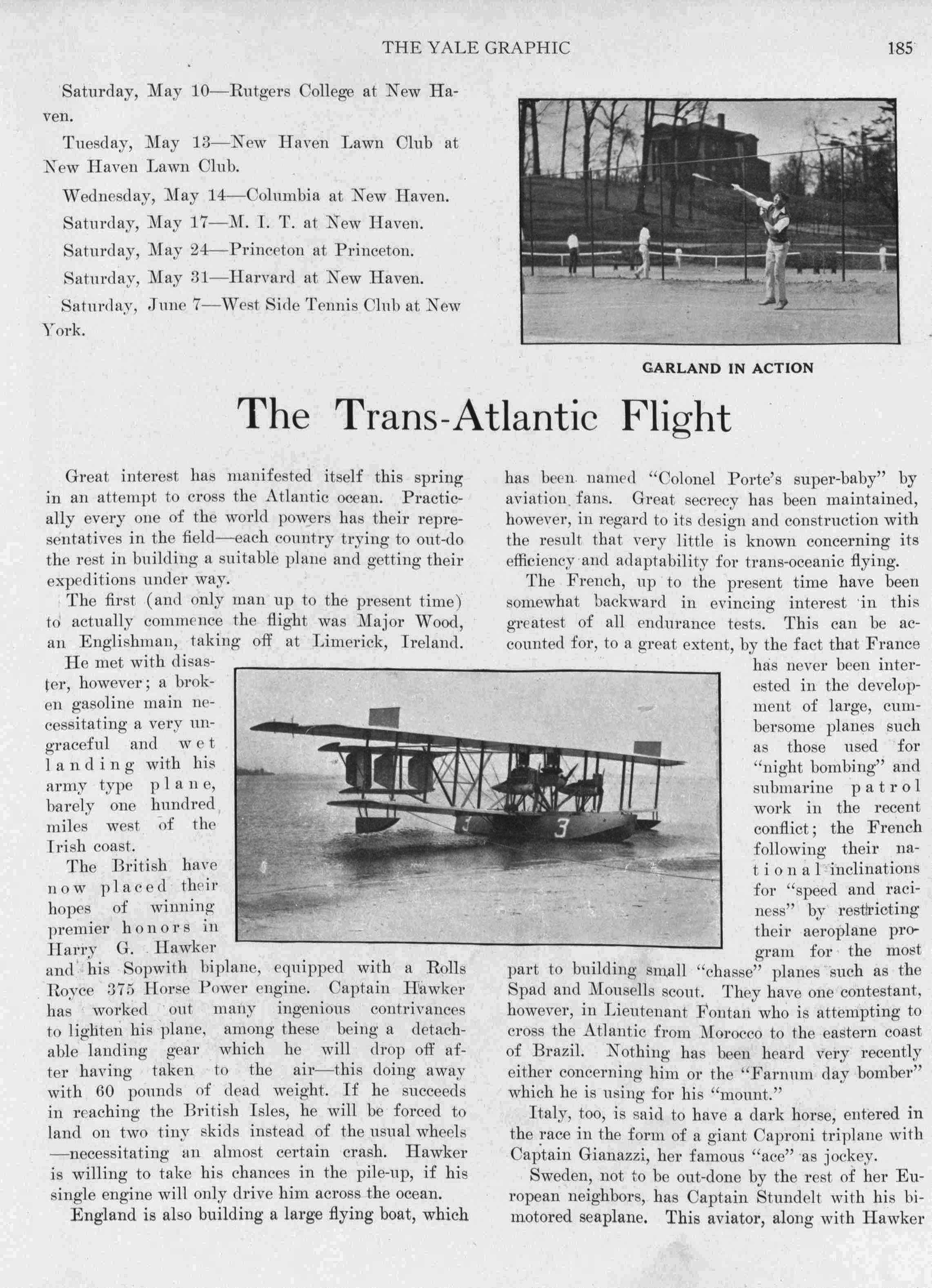 Just before the flight, planned for May 1919, an enthusiastic article discussing the possibility of transoceanic aviation appeared in the Yale Graphic Magazine. The article was unsigned, but we know now who wrote it: Juan Trippe.