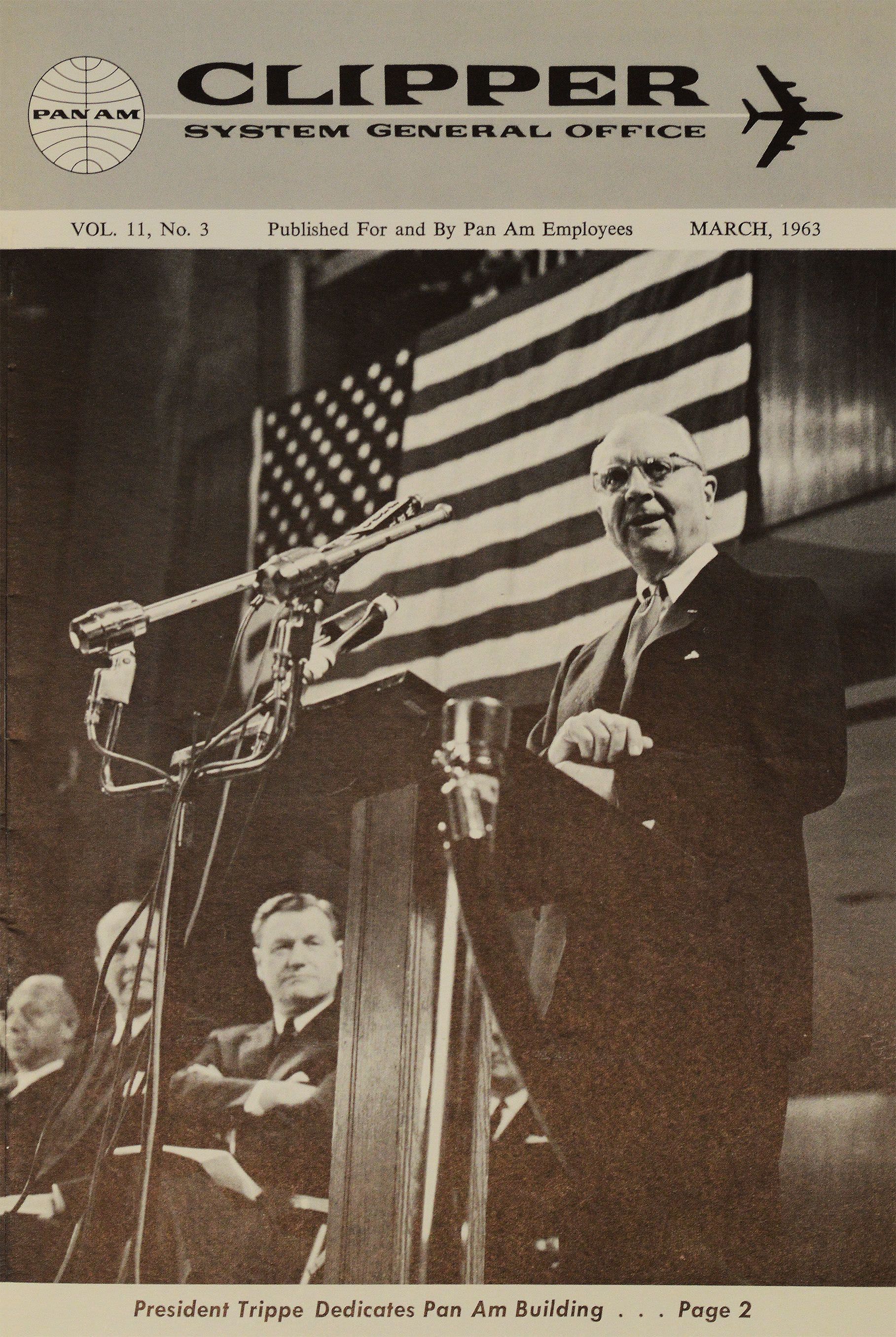 On behalf of 30,000 Pan Am men and women, at their posts along the air routes of the world, and on behalf of our 40,000 shareholders it is my privilege to name the great building, which will serve as the Home Office of our Company, the Pan Am Building." – Juan T. Trippe.