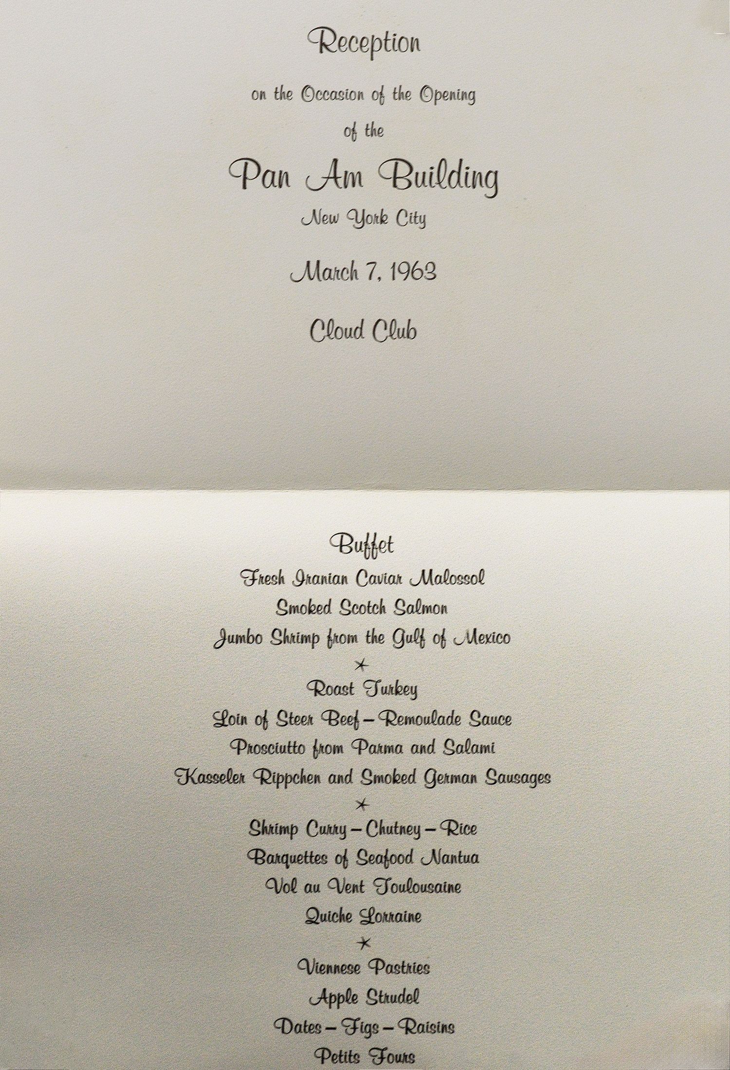 Pan Am Reception Menu selections at the March 7, 1963 Opening.