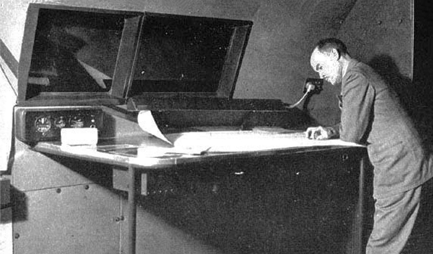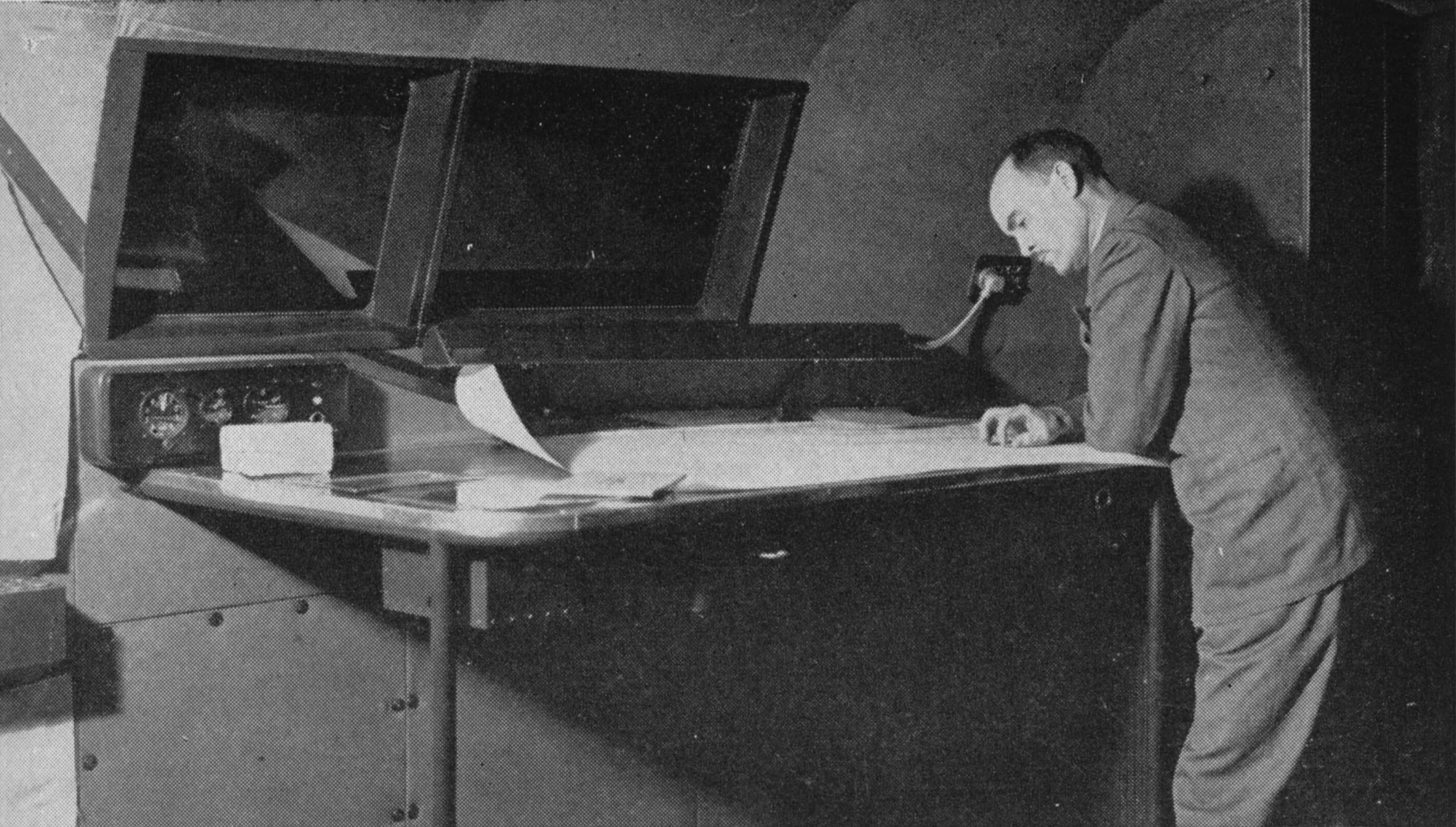 Video: Hear a June 1, 1938 radio interview from the Library of Congress with Eddie Allen as he talks about his career in flight testing, and piloting the Mighty B-314. Photo: Famed test pilot Eddie Allen studies B-314 navigational chart.